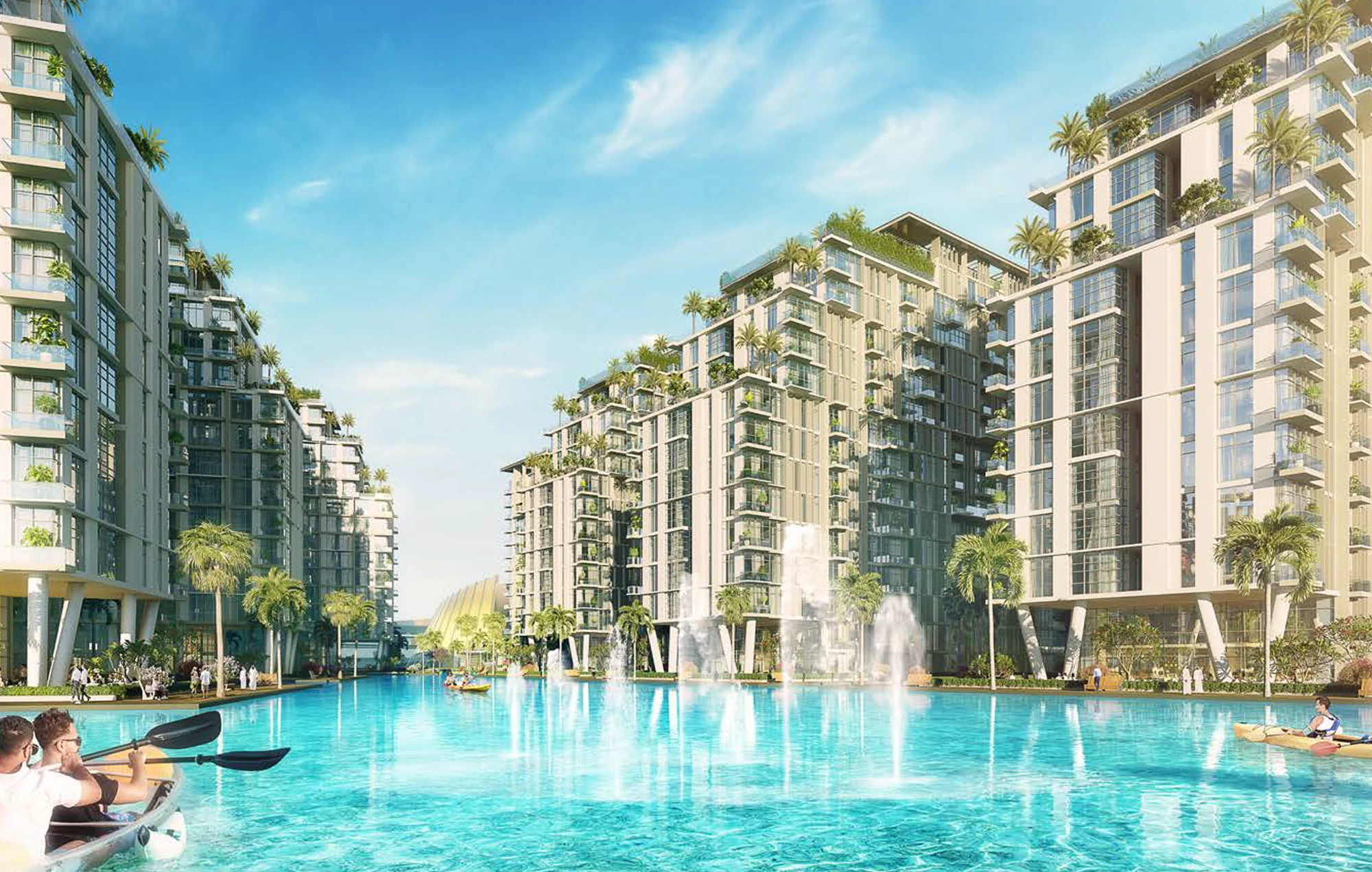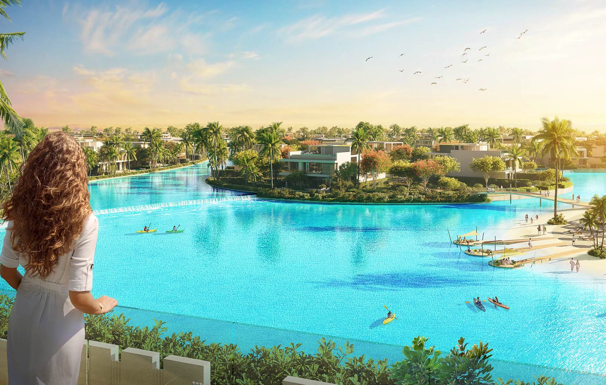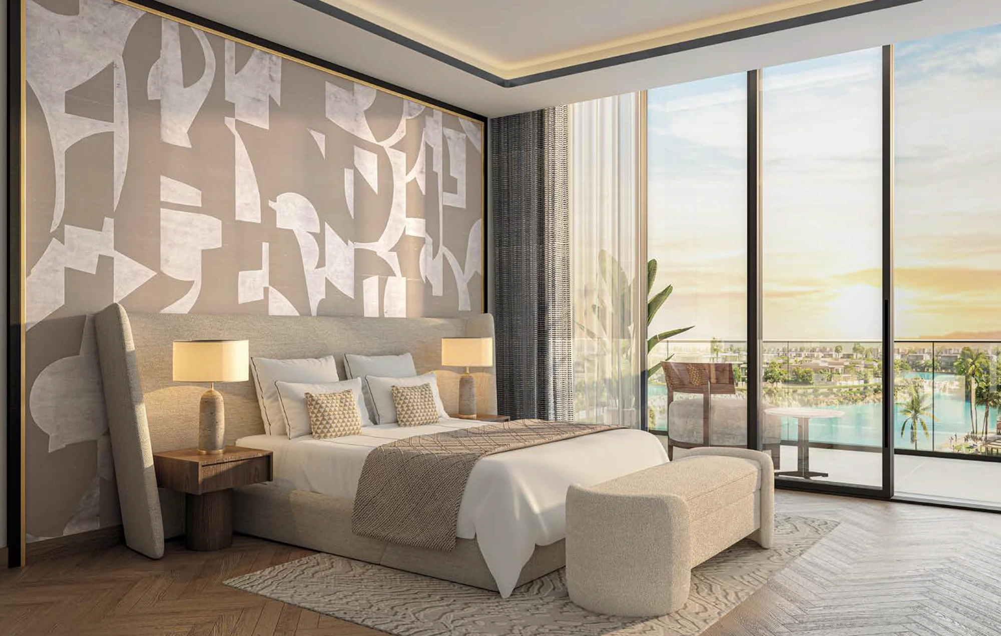 Interiors: Waterfront-style layouts with high-end finishes and lagoon views
