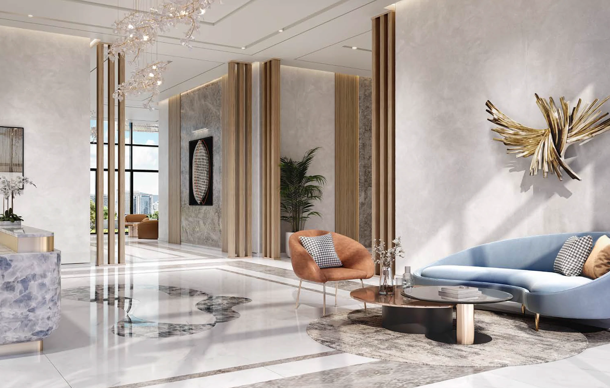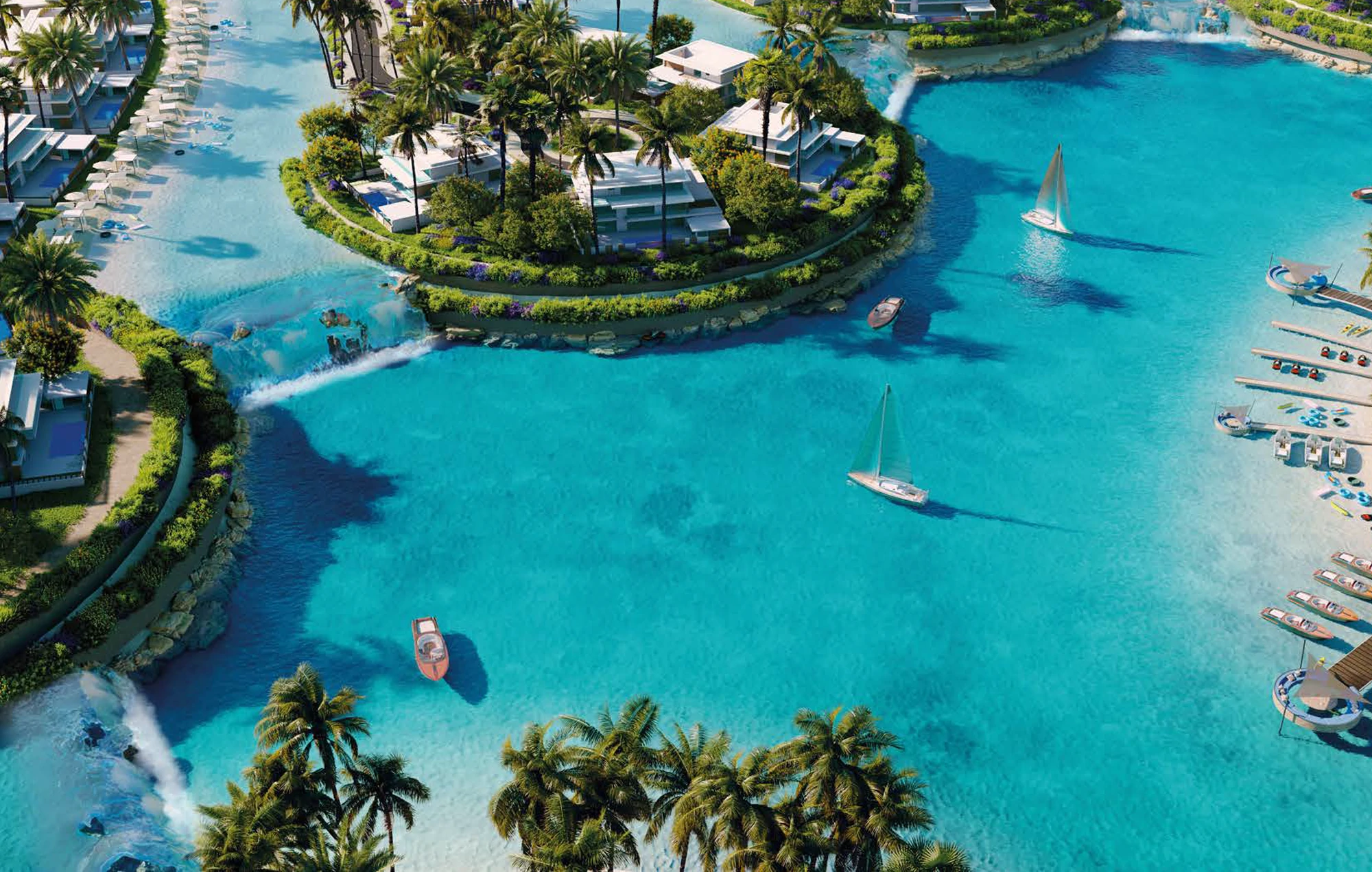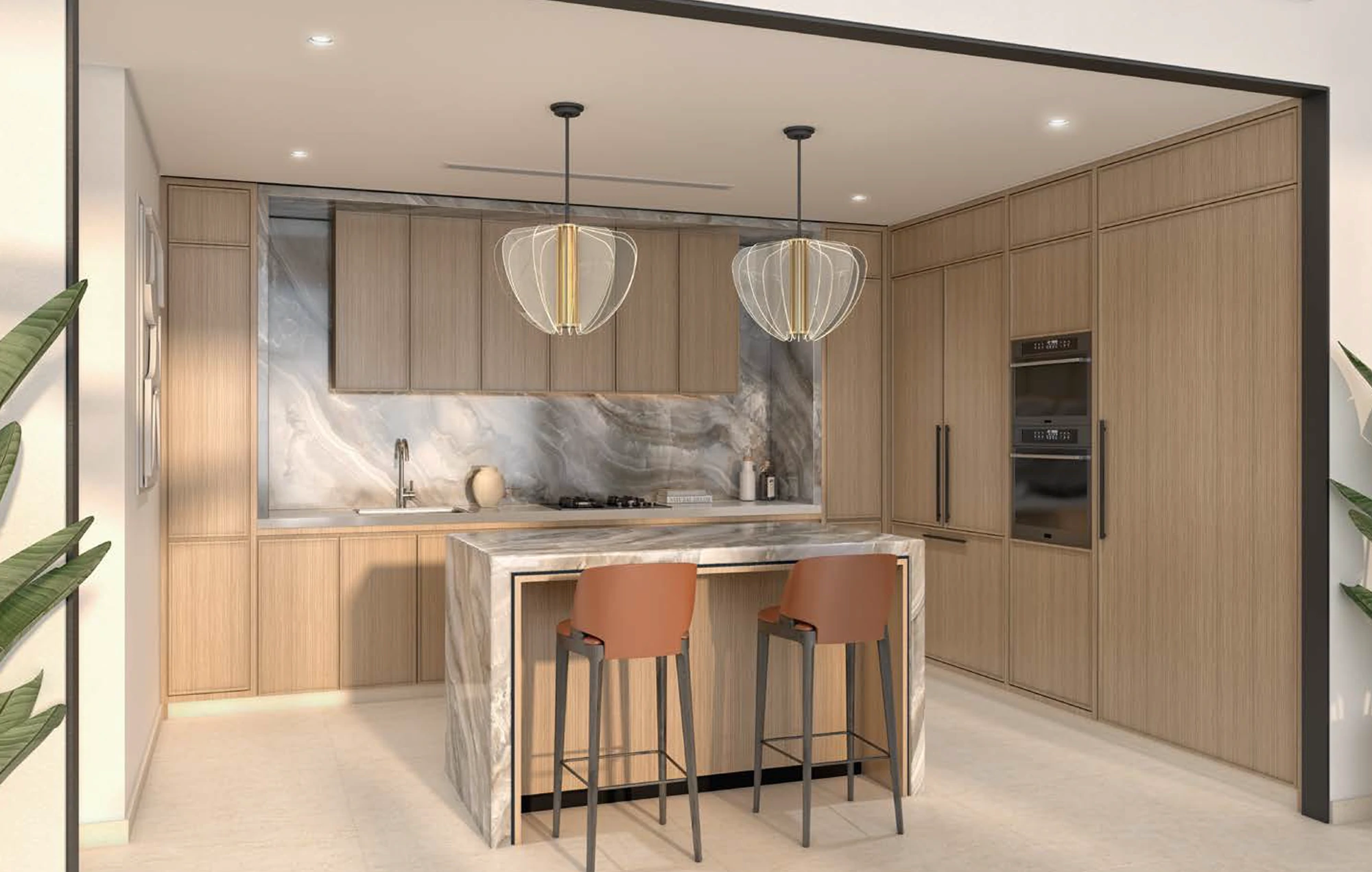 Interiors: Waterfront-style layouts with high-end finishes and lagoon views